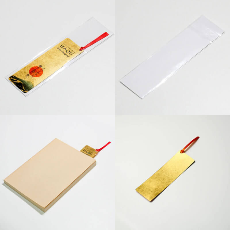 金箔しおりは透明フィルムに入れて台紙とセットになってパッケージされます。