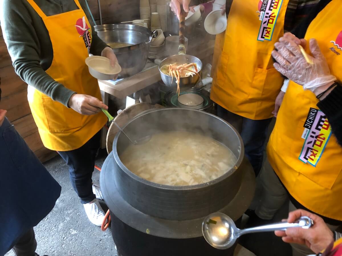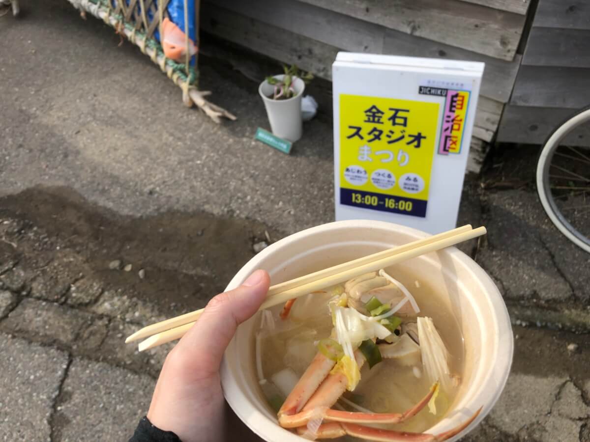 地元金石の協力で香箱の蟹汁が無料で振る舞われておりました。