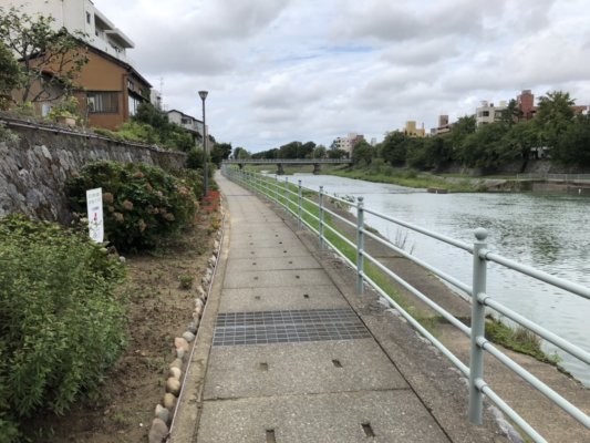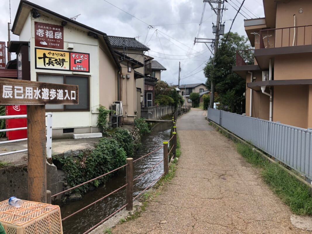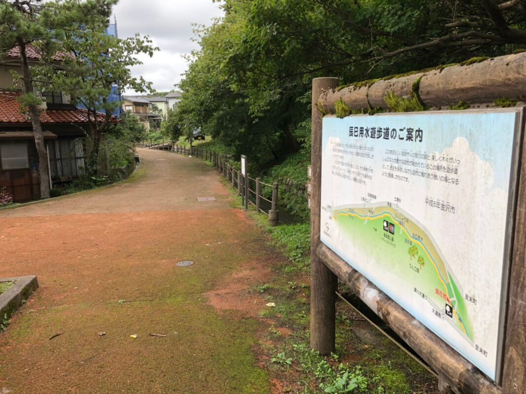 辰巳用水が流れる小立野通りから辰巳用水遊歩道に入り、犀川中流域に出て、そこから下流域に向かって歩いていき、ゴールを「天然温泉健康ランド ゆめのゆ」とするコースです。