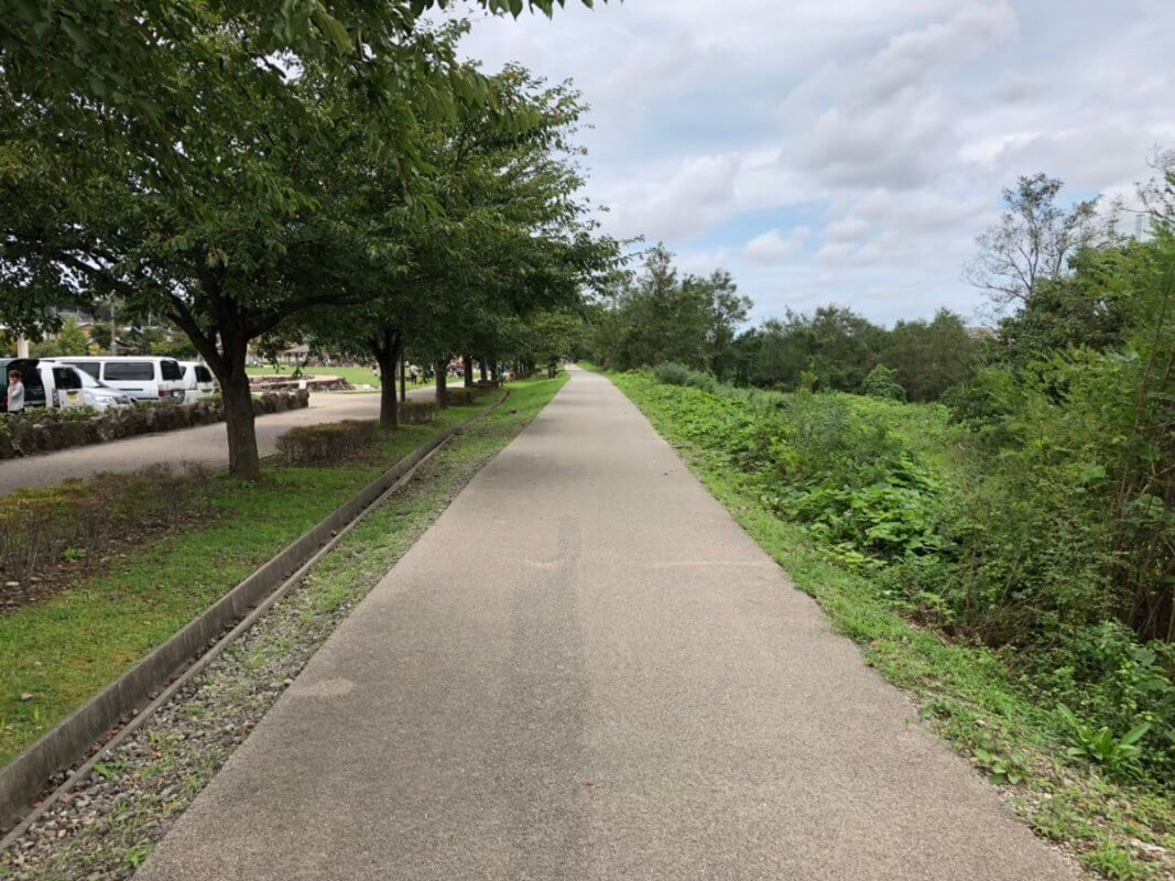 この後しばらく真っ直ぐ歩き続けると右手側に遊歩道入口が見えてきます。