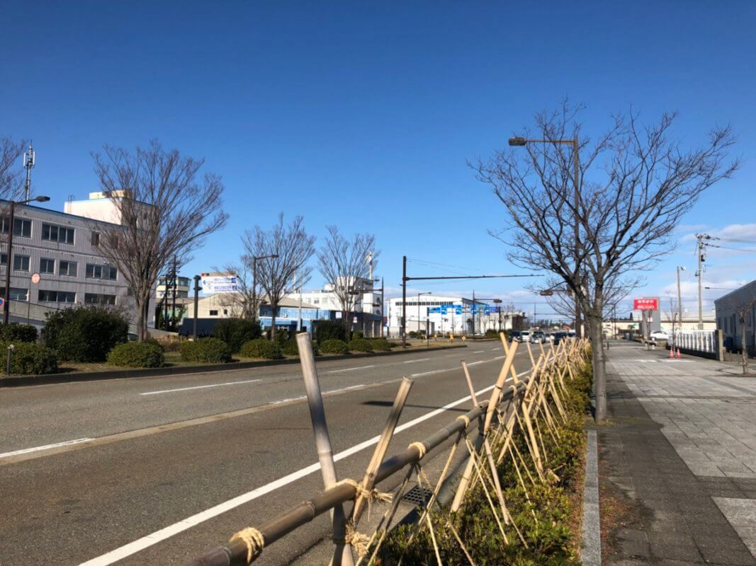アピタタウンを真っ直ぐ通り抜けて50メートル道路に出た後左折し、金沢港方面へ暫く歩きます。