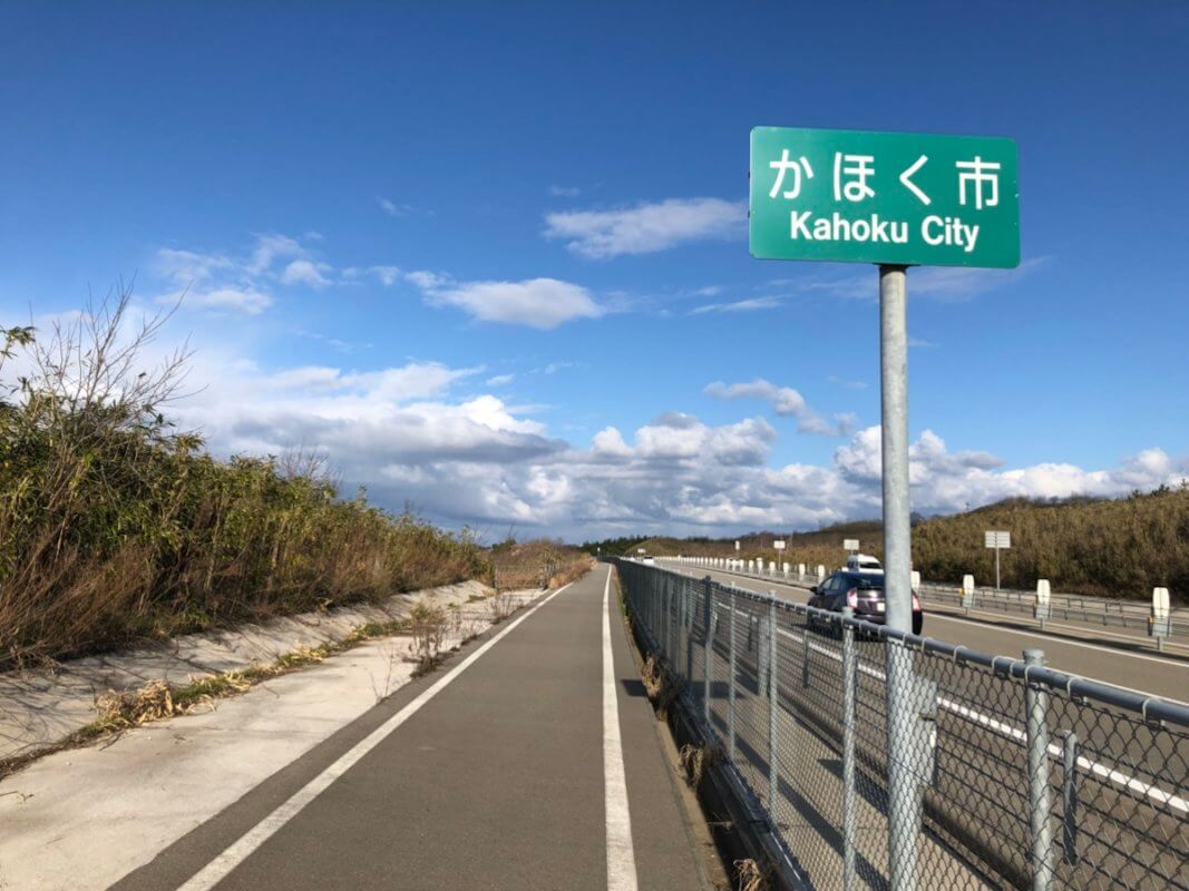 迂回路から戻り、能登海浜自転車道に入るとともに、かほく市に入りました。