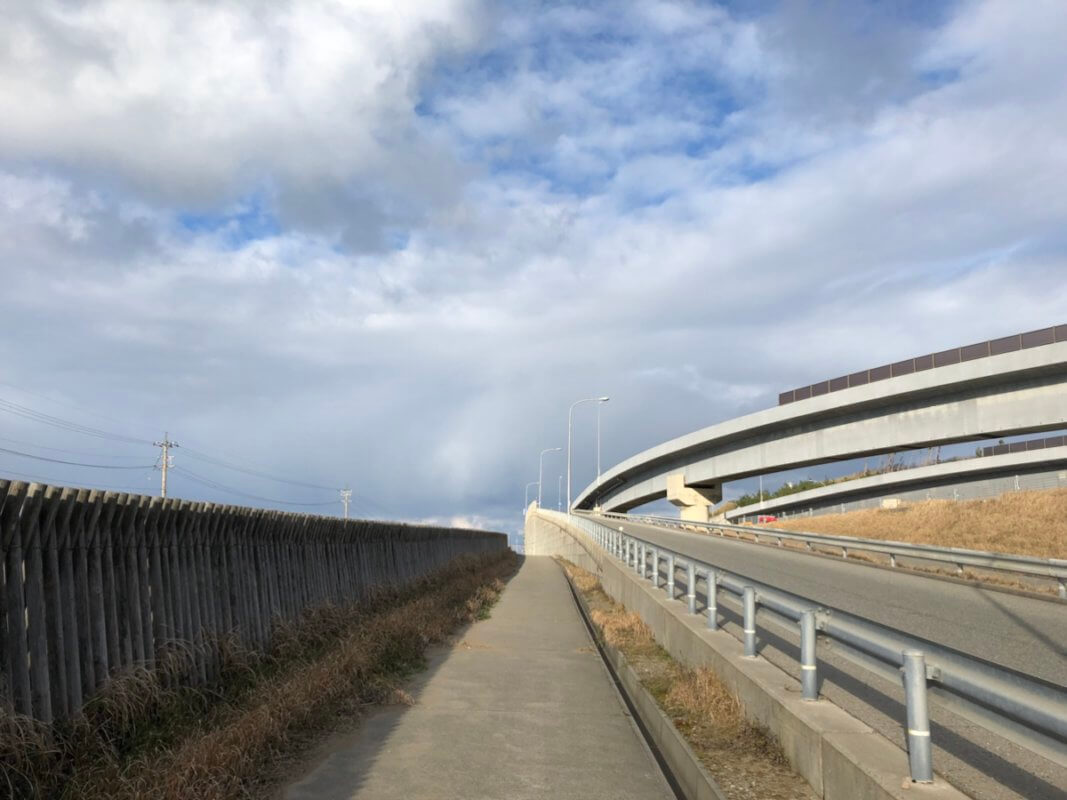迂回路から自転車道に入って4km程歩いた所で白尾インターチェンジが見えてきました。
