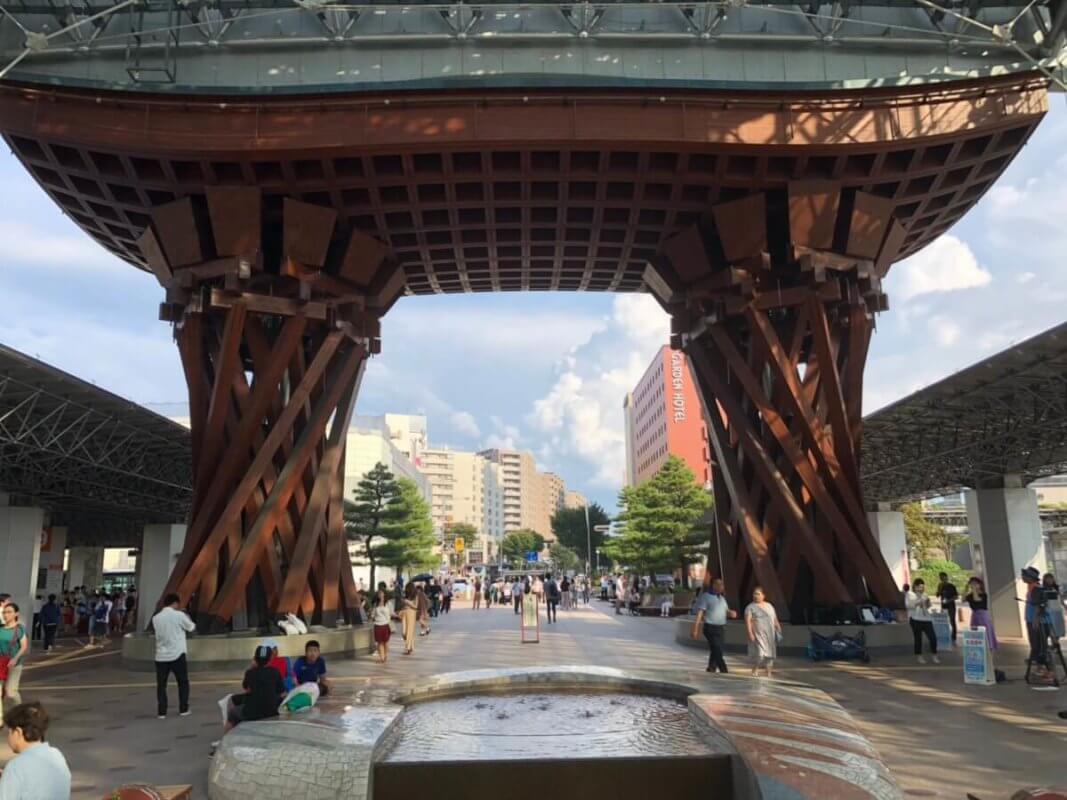 上は正面から撮った金沢駅のシンボルマークとなっている鼓門(つづみもん)。