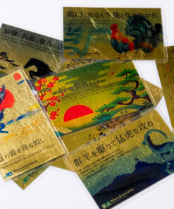 - 素材:金箔4号色(金94.43% / 銀4.90% / 銅0.66%)、ラミネート加工(パウチ加工)